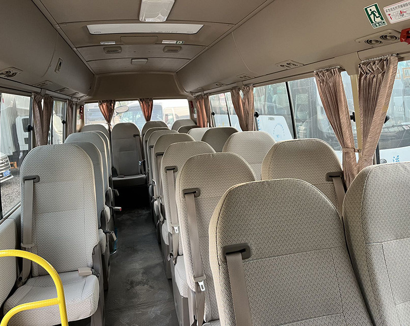 Modelo executivo comum Toyota Coaster, 23 lugares, motor 9GR, 4.0 de cilindrada, suspensão dianteira e placa de aço traseira, assentos internos de veludo, portas dobráveis, janelas deslizantes, com teto solar, 6 faixas, quilometragem 60.000 quilômetros